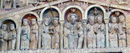 Tres siglos más tarde, hacia el año 860, los monjes benedictinos de la abadía de Conqués tenían un problema. Aunque el lugar se encontraba en una de las rutas francesas del Camino de Santiago, carecía del suficiente prestigio para convertirse en un lucrativo foco de peregrinación, así que empezaron a buscar alguna reliquia que potenciara el interés por su iglesia. Se ve que no andaban bien de recursos, a pesar del apoyo que recibían de los monarcas carolingios, porque no se les ocurrió nada mejor que robar las reliquias de Agen (aunque quizá hubo otra motivación que desconozco, como alguna rivalidad entre los dos centros religiosos). El encargado del hurto fue este monje llamado Arosnide, quien, tras pasar seis años en Agen ganándose la confianza del clero local, un día consiguió apropiarse de las reliquias de santa Fe para llevarlas a Conquen, donde se custodian desde entonces. Lo cierto es que no puedo evitar sonreír pensando en este culebrón en torno a los santos despojos.