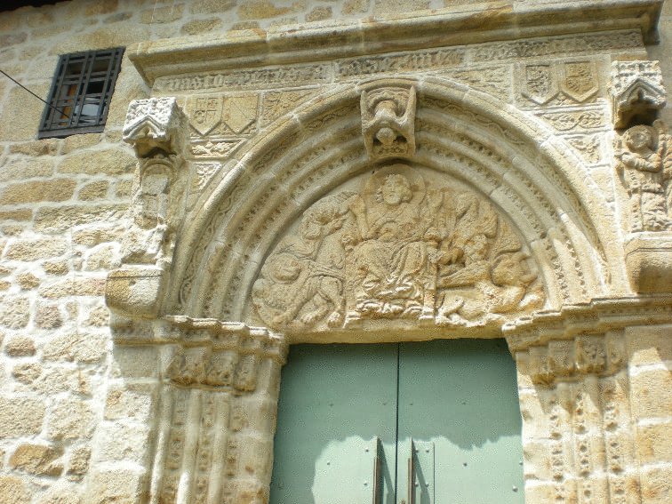 § Ángulo superior derecha, el águila, ¿Qué? Empiezan los problemas. Parece que el águila ha desaparecido y que un San Juan viejo puede estar escribiendo o puede que (recordad el de Santiago de Compostela) se trate de un personaje que cuenta algo en una caja.