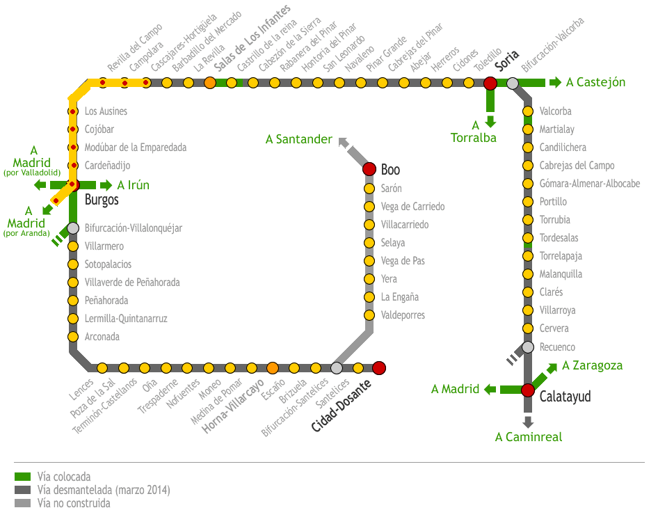 El trazado del ferrocarril Santander-Mediterráneo entre Calatayud y Dosante se construyó entre 1925 y 1930, año en que entró en funcionamiento, hasta que se clausuró el 1 de enero de 1985..GIF [ 52.86 KiB | Visto 3558 veces ]