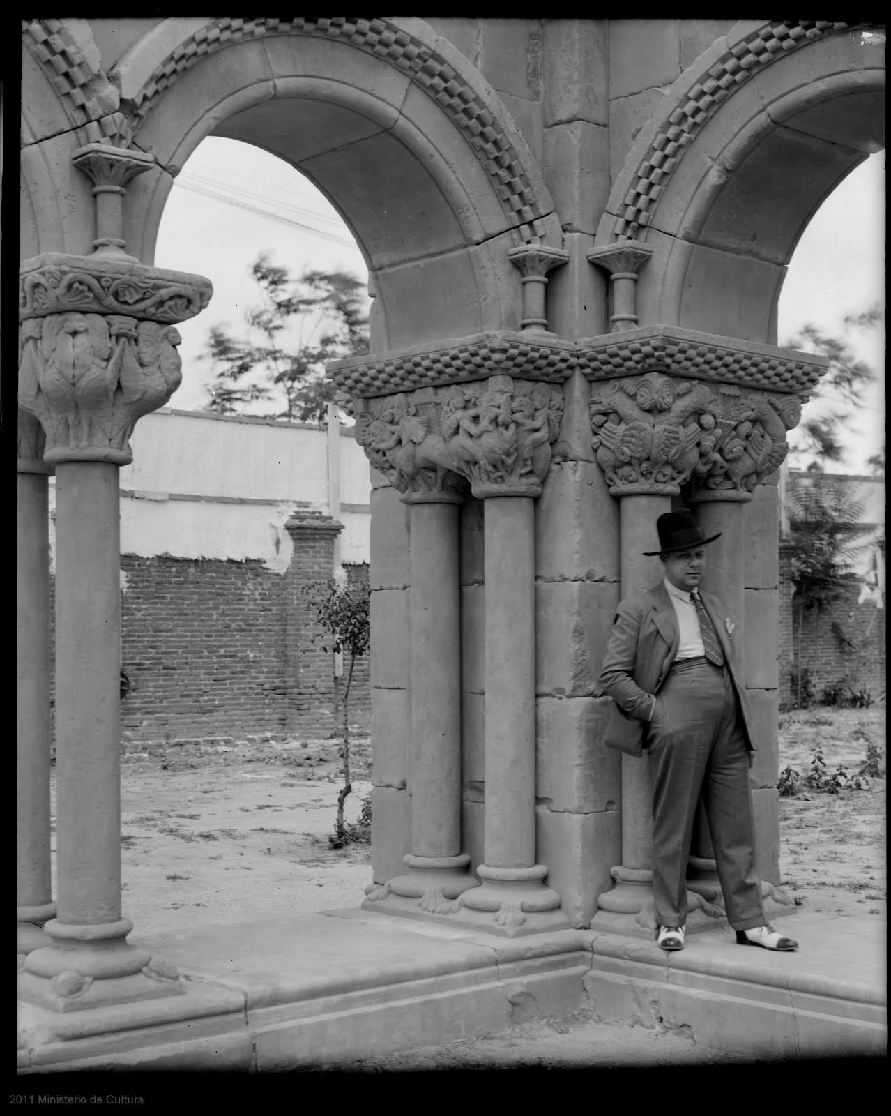 FOTO. Ignacio Martinez con su obra el claustro romanico de Palamos (Madrid) 1934-36