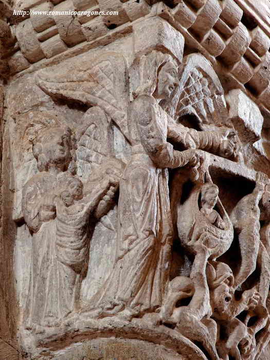 Además, mientras que los capitles de la derecha del tímpano remiten a ideas y símbolos positivos, los de la izquierda (como los comentados en la entrada anterior), llevan a connotaciones negativas). Ya callo.