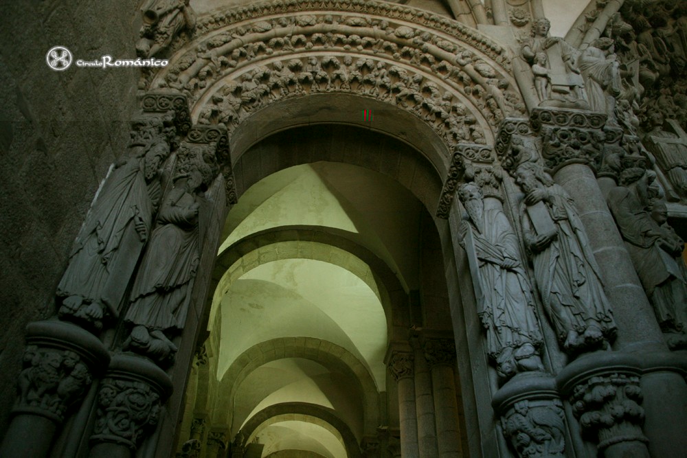 Una cosilla más: creo que la clave teológica del Pórtico de la Gloria está, no en el tímpano central, si no en la arquivolta del acceso a la nave lateral norte: los hombres de la sinagoga aplastados por el peso de la Ley.