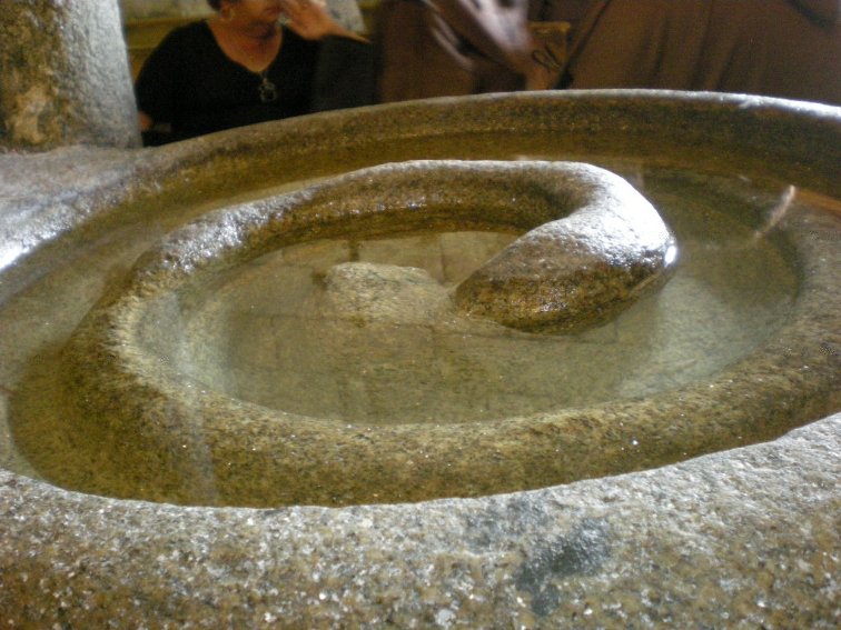En esta fotografia os presento el interior de la pila del agua bendita en la iglesia de San Pedro de Muros. Si mal no recuerdo otra igual se haya en la iglesia de Santiago de Ribadavia.