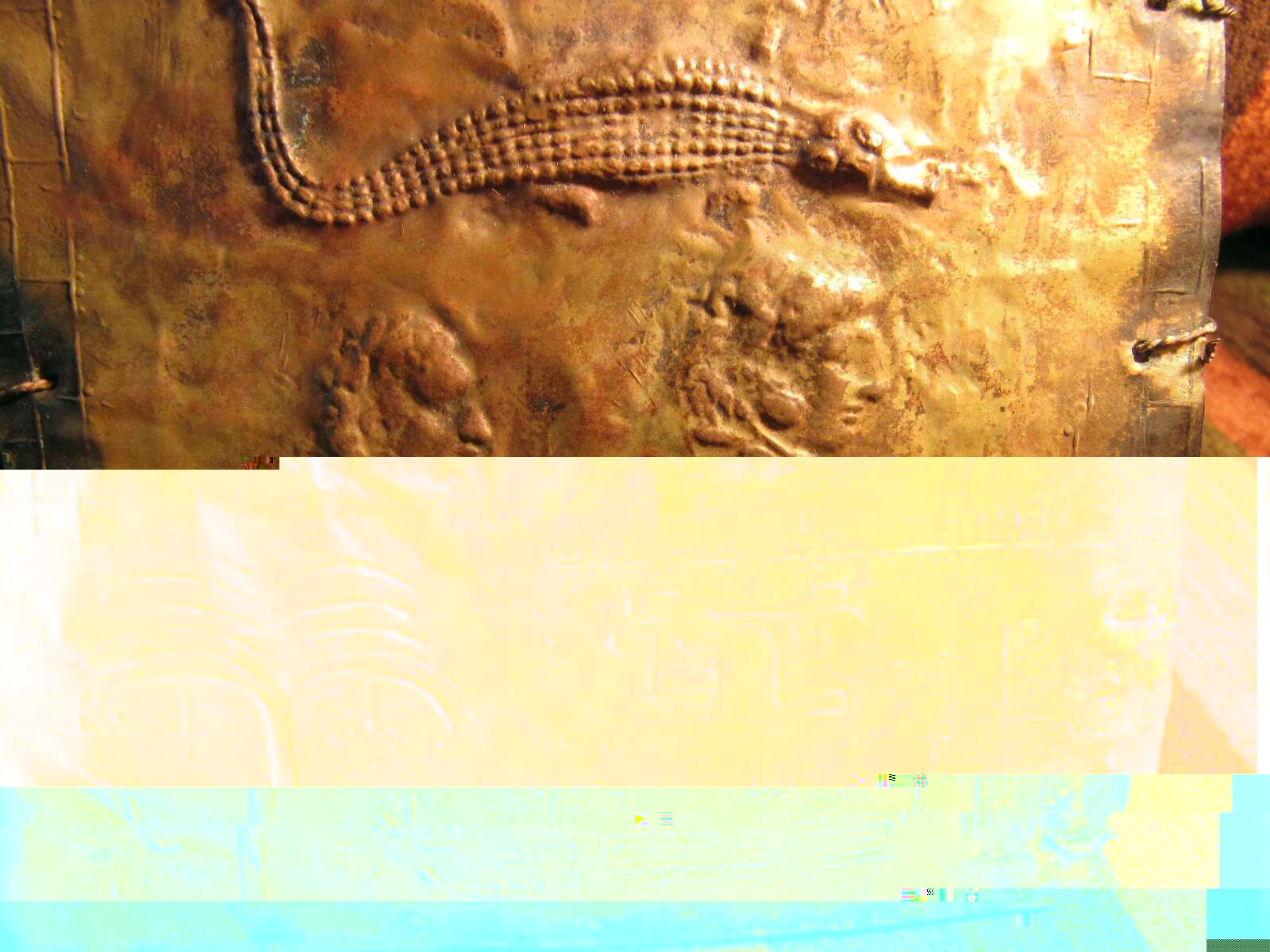 El gato y el cocodrilo nos remiten a la iconografía egipcia es cierto, pero también nos remiten a la tradición juanista, la de la vía árabe, qué quiero decir cuándo me refiero a esto? Pues, a lo dicho que ni Cristo era cristiano, ni Buda budista ni Krishna hinduísta. Los primeros siglos antes de la instauración del cristianismo como religión lo que habían eran los nazarenos con Santiago, Pedro y Juan a la cabeza. Ratzinger en el libro "Convocados en el camino de la fe: la Iglesia como comunion" cita los encuentro de Pablo con los 3, y añade que si Pedro no hubiera tendido la mano a Pablo, el cristianismo continuaría siendo una secta judía hoy en día. No sé la verdad si avanzamos mucho, los cristianos continuamos siendo una quinta parte del planeta, pero bueno, en el libro Ratzinger salta olímpicamente por encima de la autoridad de Santiago y Juan, lo único que vale es la legitimación por parte de Pedro. La continuidad de Santiago y Juan es la que recorre la tradición cristiana árabe, alusión a ella son los famosos libros de Sacromonte y los recientes códices de plomo encontrados y que están validados por mitad de la comunidad académica mientras la otra mitad se limita a decir que son falsificaciones muy sofisticadas, en fin , el rollete de siempre. Adjunto fotos de los códices. En este caso, el cocodrilo tiene una connotación de reptil, como la serpiente o el famoso Agatodaemon griegos.