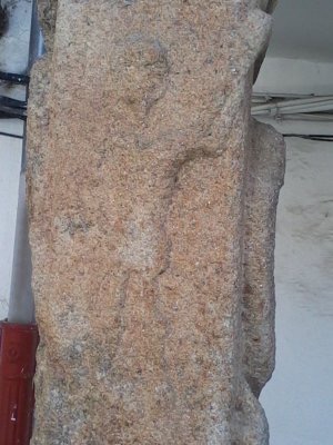 Está tallado en la parte baja de un crucero ubicado en la iglesia románica que expongo en otra conversación: San Mamede de Moldes (Boborás , Orense):