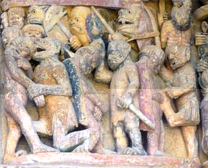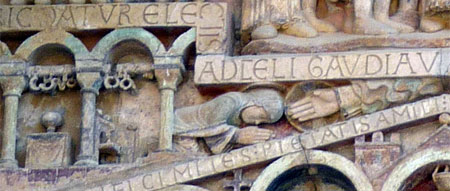 Arosnide, que se encuentra en el extremo, medio en cuclillas. Su historia está relacionada con uno de los negocios más rentables del Medioevo, el tráfico de reliquias.