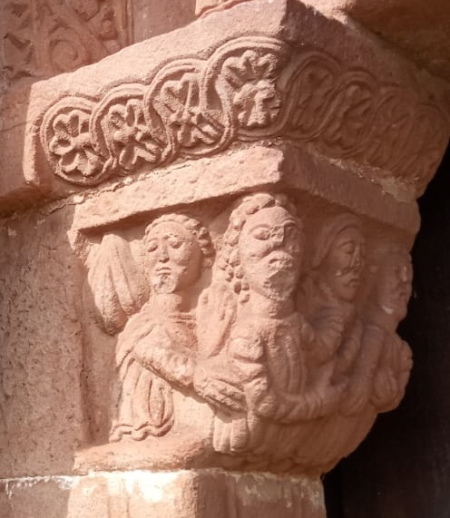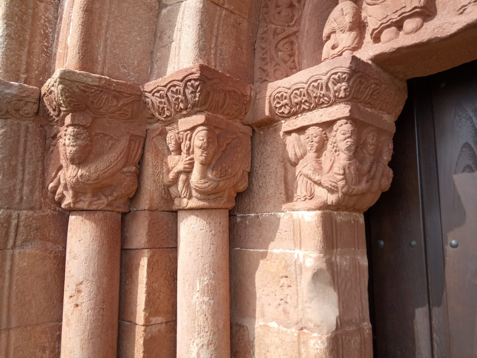 Antes de nada, quiero ser sincero contigo: nunca me he detenido a intentar buscar el significado de la mocheta que nos colocas, ni siquiera el del resto de los capiteles de la portada. De hecho, mi mirada solo se detuvo en el tímpano.