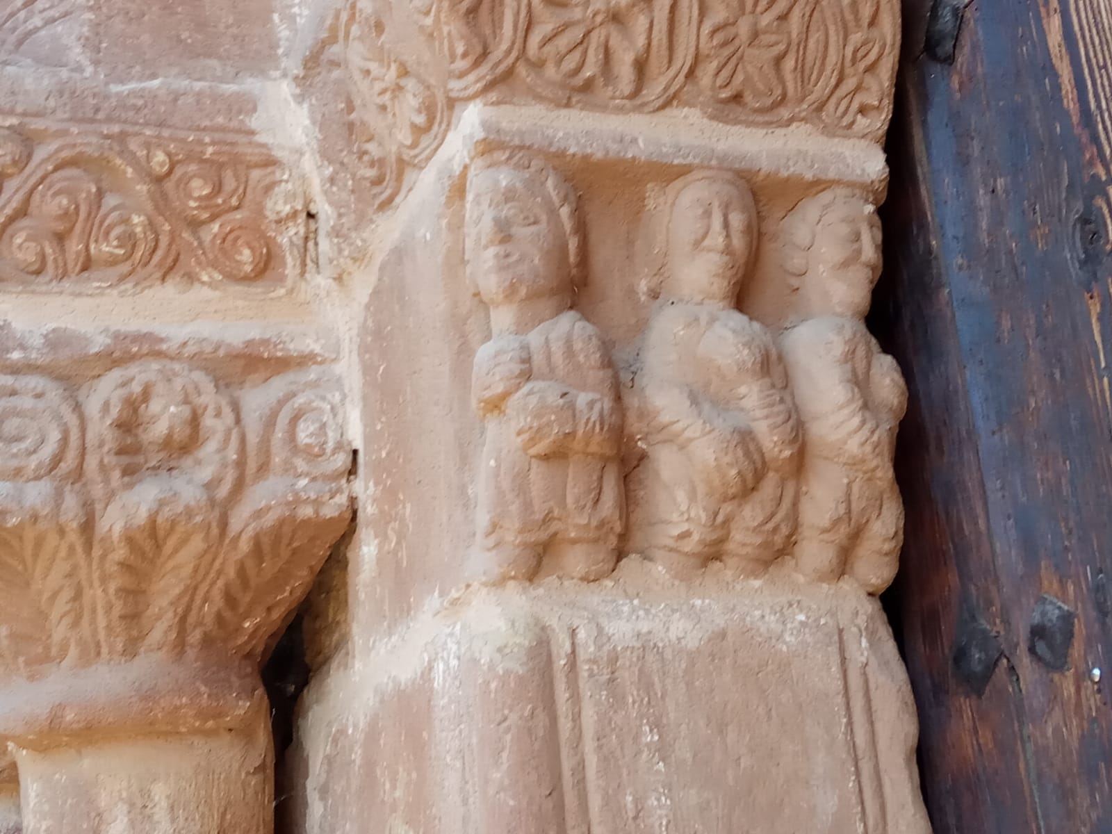 Soy nuevo en este foro y estoy abrumado por la información que teneis en el. Gracias a todos. Publico por primera vez a ver si alguien me puede dar alguna luz. Os paso foto de la mocheta izquierda de la iglesia de San Juan Bautista de Tozalmoro, según Gaya Nuño representa a los tres reyes magos, quizás por ser un trio de figuras e identificar a la cuarta por un angel. Lo curioso de la imagen es que las dos figuras laterales agarran a la central uno de ellos por el cuello, Ines Monteira en su tesis doctoral lo identifica por la captura de un musulmán, habla de dos figuras con pelo rizado y la central con turbante. No se. También cuelgo otra mocheta de la iglesia nuestra señora de los angeles de Fuensauco, probablemente realizado por los mismos escultores, también tres figuras pero muy diferentes.