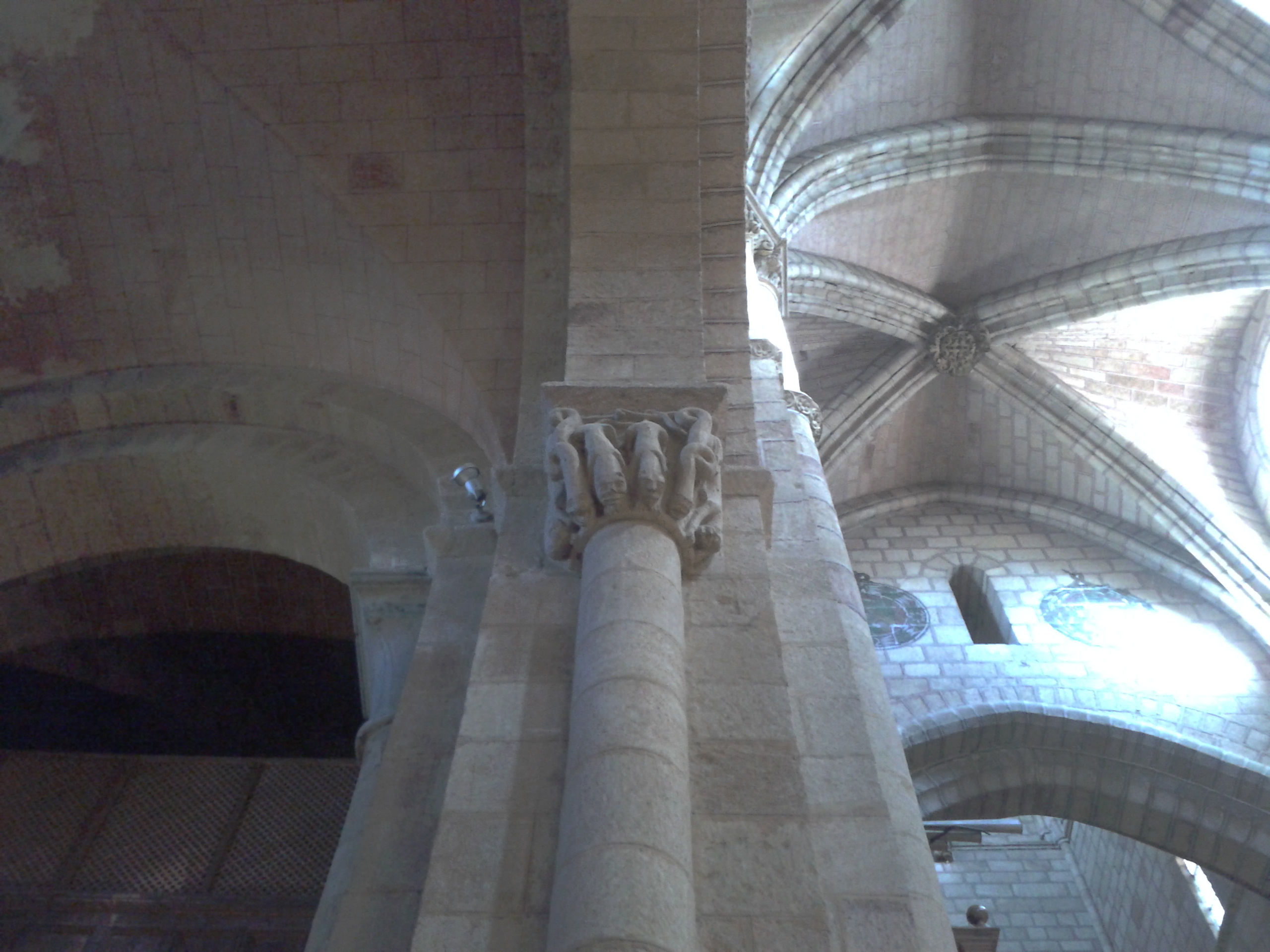 En cuanto a la nave central creo que la situación es distinta. Sus bóvedas se cerraron bastante después y presuntamente de oeste a este. Que yo sepa, ademas las reformas no la han afectado, por lo menos a ese nivel de tener que desmontarlas y luego montarlas, por lo que supongo que los plementos que vemos ahora son los que hay desde el principio, y que cierran unas bóvedas que efectivamente ya apuntan al nuevo aire gótico.