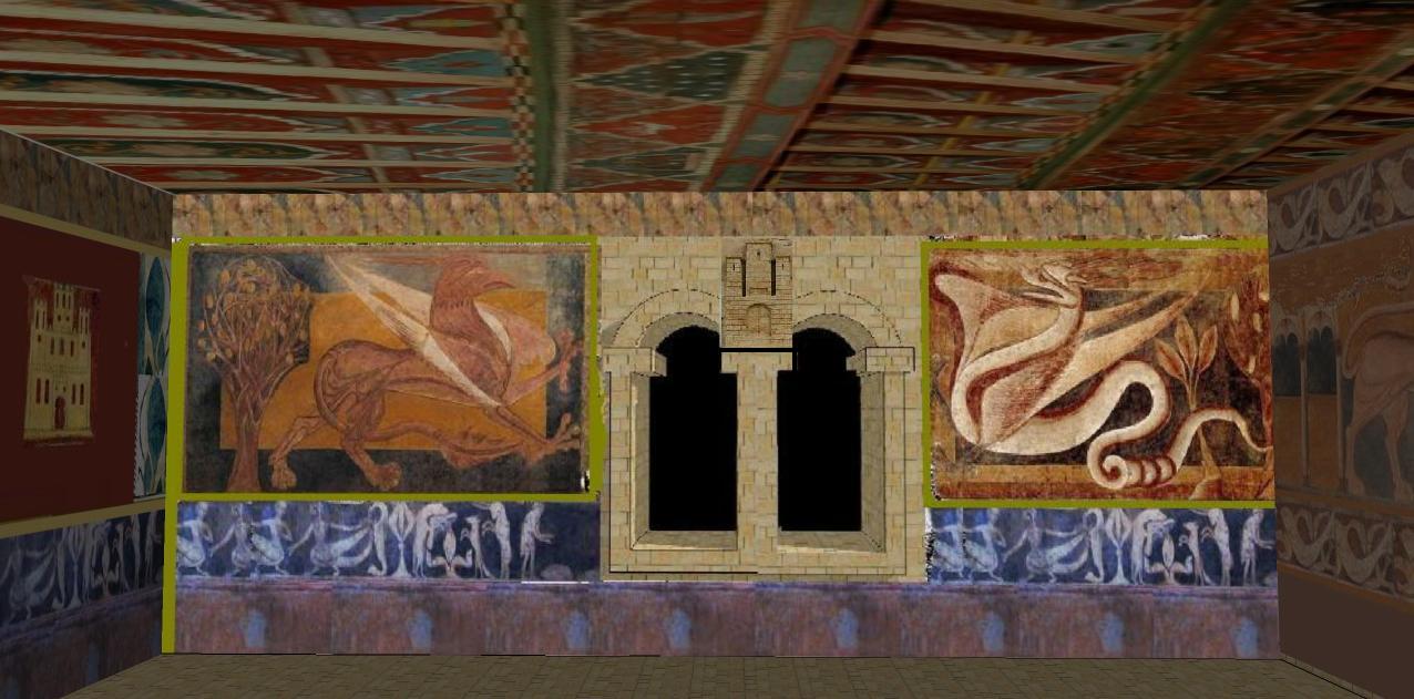 FOTO 7 Sala Palatina de San Pedro de Arlanza las pinturas representan al reino de Castilla y Ducado de Aquitania.
