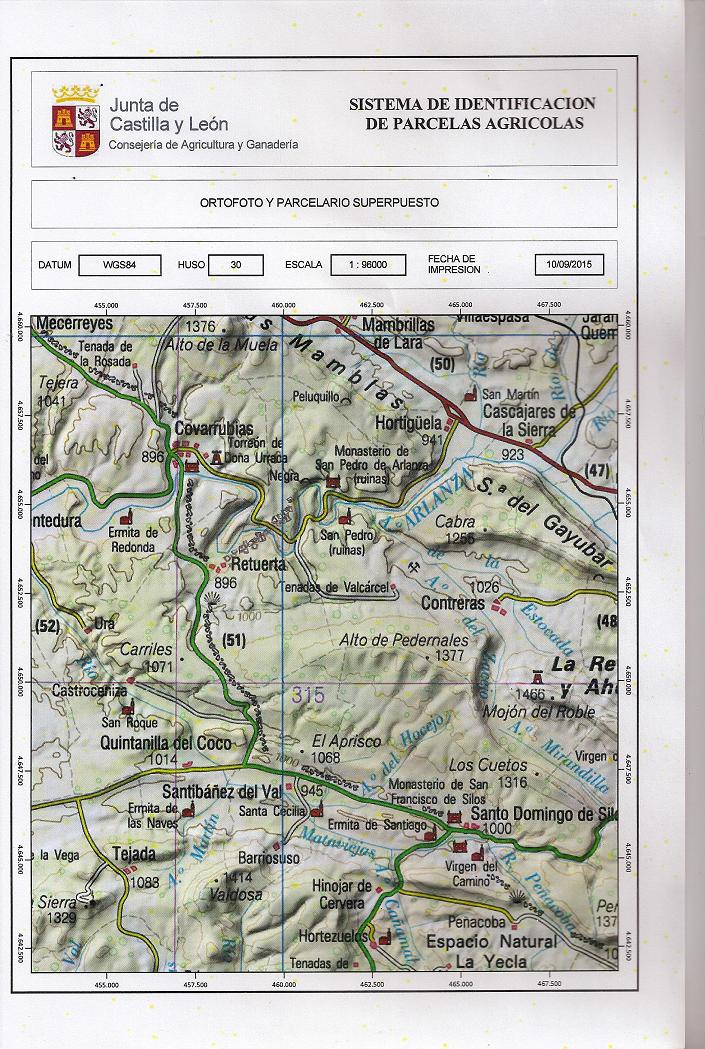 Comentario: Mapa de la zona de San Pedro de Arlanza con la situación de estación de Hortiguela donde se cargaron las piedras para Madrid