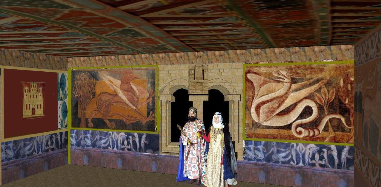 en la Torre del Tesoro de San Pedro de Arlanza en Camara del Tesoro o Sala Palatina las pinturas que representa el castillo como simbolo de Castilla no como escudo, si como señal y la recreanción inferior el leopardo el escudo de armas de Leonor Plantagenet Princesa de Inglaterra y reina consorte de Castilla