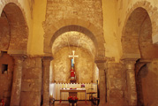 La actual iglesia fue construida entre los siglos IX y XIII , sobre una anterior iglesia visigotica.De dificil datacion inicial , en el edificio se encontro una piedra con un lado redondeado y acanaladuras concentricas en los extremos, que se ha dado como anterior al periodo romanico , y posiblemente de un altar.